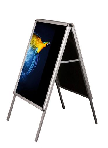 Graphics are quickly and easily inserted on either one or both sides using the snap frames, while anti-glare poster covers protect your graphics from fading and maximise visibility in bright sunlight. The frame folds completely flat for easy transportation and storage. Available in A1 and A2 sizes.