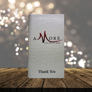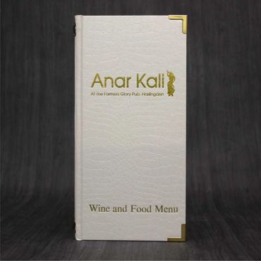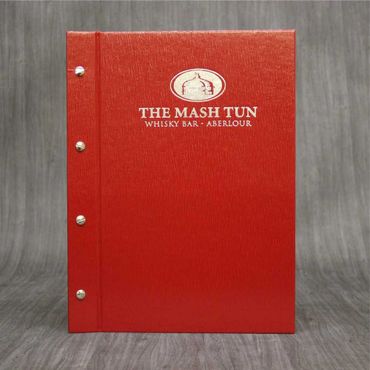 Peronalise your menu covers in a variety of methods including blind embossed logo or with a metallic foil print.