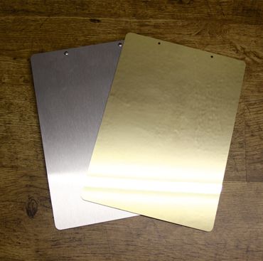 our second range option for the metal menu covers are our aluminium composite covers, these are a items allow for a full colour branding to be added along with coming in a selection of finishes including- brushed gold, brushed silver, brushed copper, mirrored gold, mirrored silver.